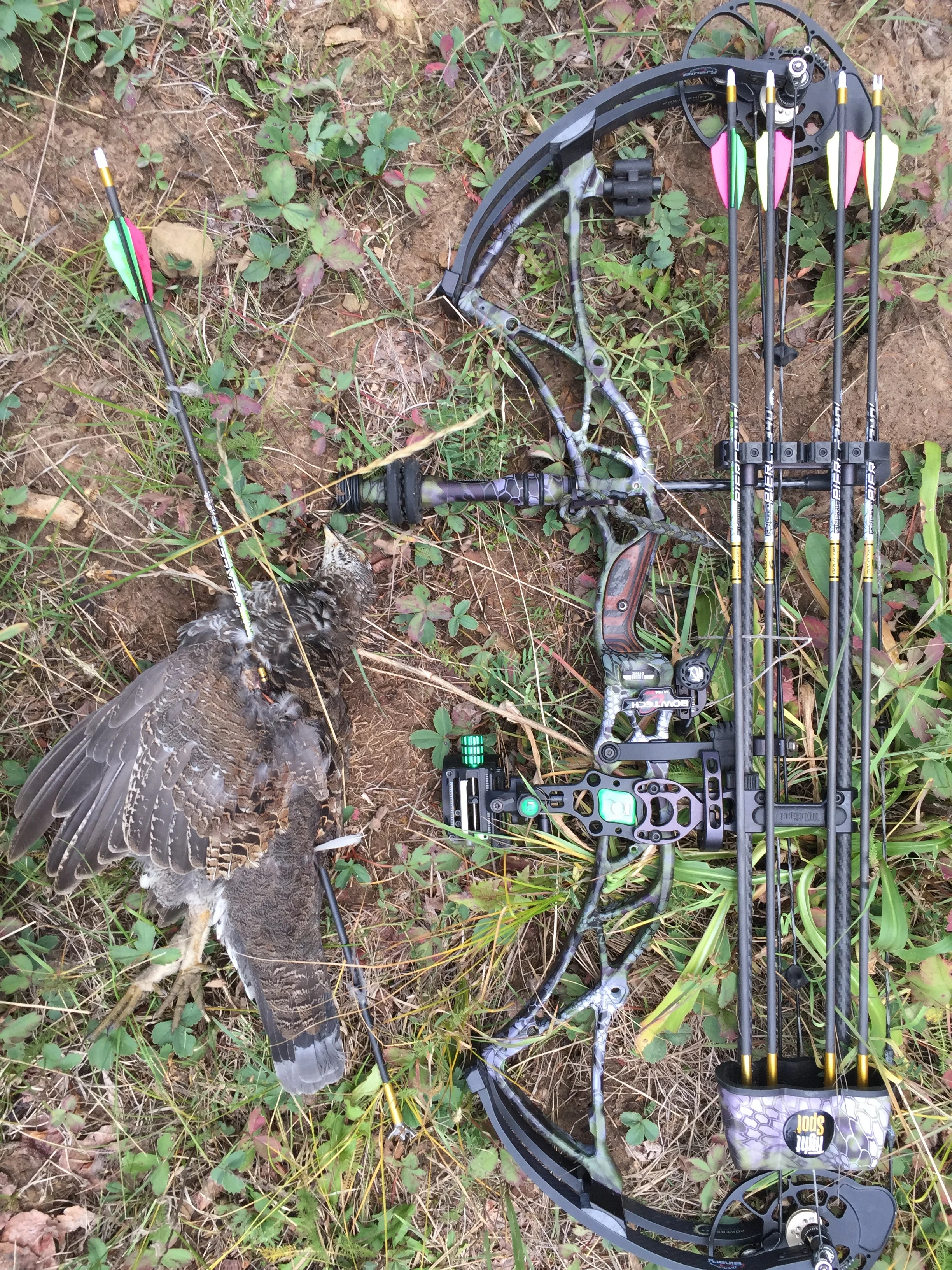 After our first day with Hodge, Glessner and I had the training wheels off and were on our own. About mid-week we went out for a morning hunt into an area dubbed as the Champagne Room. This was the coveted breeding ground were all the rut action went down last year. And though the prime rut was another 1-2 weeks away, the big bulls were establishing their order. That morning we set up with a dry setup and started calling. Almost immediately we had a bull grunting aggressively below us so we made a move. We called, he answered and we moved in again. I’m typically a little more conservative in my hunting style, but I learned enough watching Hodge to know you need to get aggressive or go home. So, I wailed on the bugle, closed distance and made a ruckus that triggered this big bull to come charging down through the woods looking for a fight. Within seconds I had the biggest animal I’ve ever seen in wild within about 10 yards of my broadhead and he wasn’t slowing down. He flanked me to the meadow and Glessner stopped him with a cow call just to allow a perfectly broadside 20 yards shot. I delivered what I thought to be a perfect lung shot, but my arrow hit a rib and only got about 1/4 way in. the bull dropped to the ground immediately, but within a few seconds recovered to his feet to run up the hill. About 70 yards up the hill, the bull toppled over again and this time laid down for 20-30 seconds. This was it. I thought I had my trophy bull and was overcome with adrenaline. But, this story doesn’t end well. He miraculously made it back to his feet and within seconds was running away and vanished into the timber. I couldn’t believe my eyes and was stunned. It was simply unreal. We ended up waiting for an hour, but my optimism was still pretty high after watching him crash twice. This quickly waned as we tracked him for the next 11 hours by sparse blood and his hoof print. We put everything we had into this track, but I failed on the recovery. I went out the next 3 days and relentlessly searched and searched and searched, but nothing.